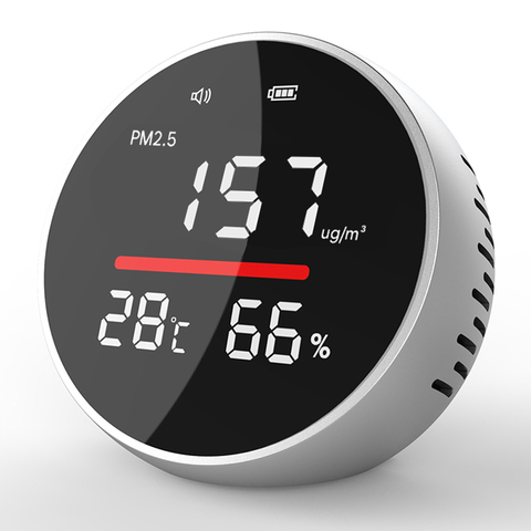 Mini analizador de calidad del aire interior 3 en 1 de escritorio, medidor de Metal PM2.5, Monitor portátil, detección de humo/polvo, alarma de activación Humiture